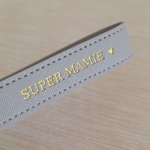 Porte-clés Lanière en simili cuir gris perle – Super Mamie